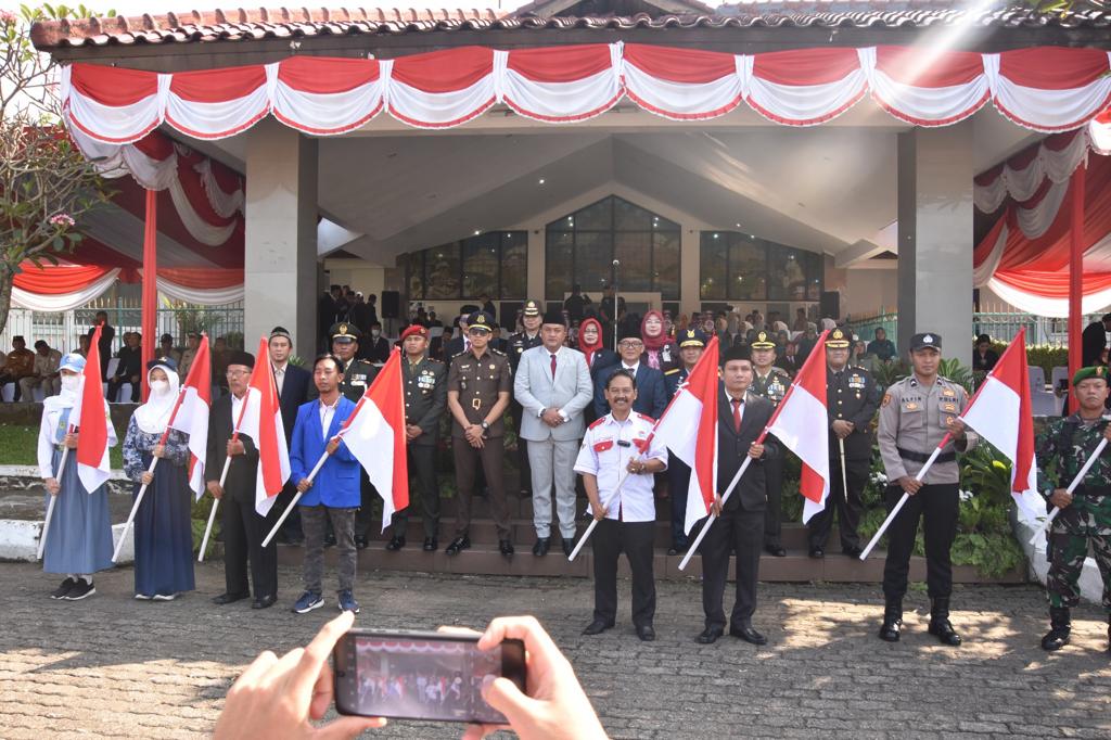 REAKSIMEDIA.COM | Polres Bogor – Upacara Peringatan Kelahiran Pancasila Tahun 2023 di gelar pemerintah daerah Kabupaten Bogor pada Kamis, 01 Juni 2023 di lapangan tegar beriman Kabupaten Bogor, yang mana dalam kegiatan tersebut di ikuti oleh berbagai instani mulai dari TNI- Polri, Sat Pol PP, Disbub, PNS hingga Pelajar.