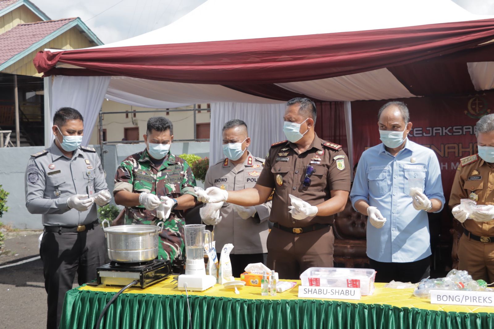 Selanjutnya keseluruhan barang bukti tersebut baik barang bukti narkotika dan non narkotika pemusnahannya dilakukan dengan cara dihancurkan dan dibakar.