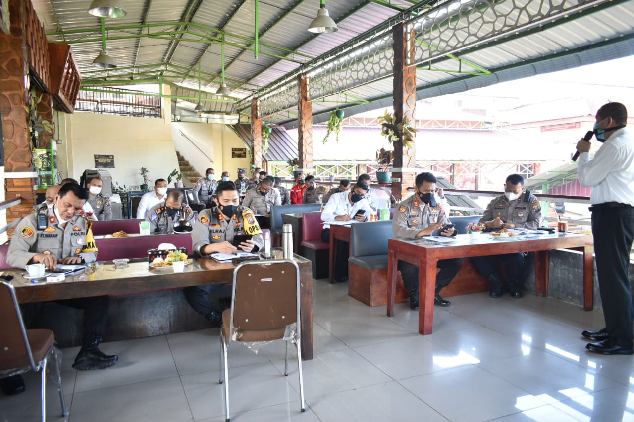 Serta turut menghadiri Para Kasat, KBO, Kasubbag, Kanit dan Kasi Polres Tapanuli Selatan untuk pembukaan sekaligus laporan oleh Plh Kabag Ops Polres Tapanuli Selatan mengenai Situasi Penyebaran Covid-19.