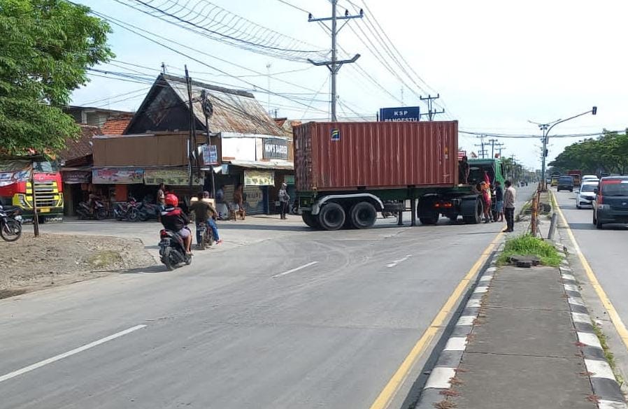 Sigap, Anggota Polsek Karangtengah Atur Lalu Lintas di Lokasi Truk Mogok