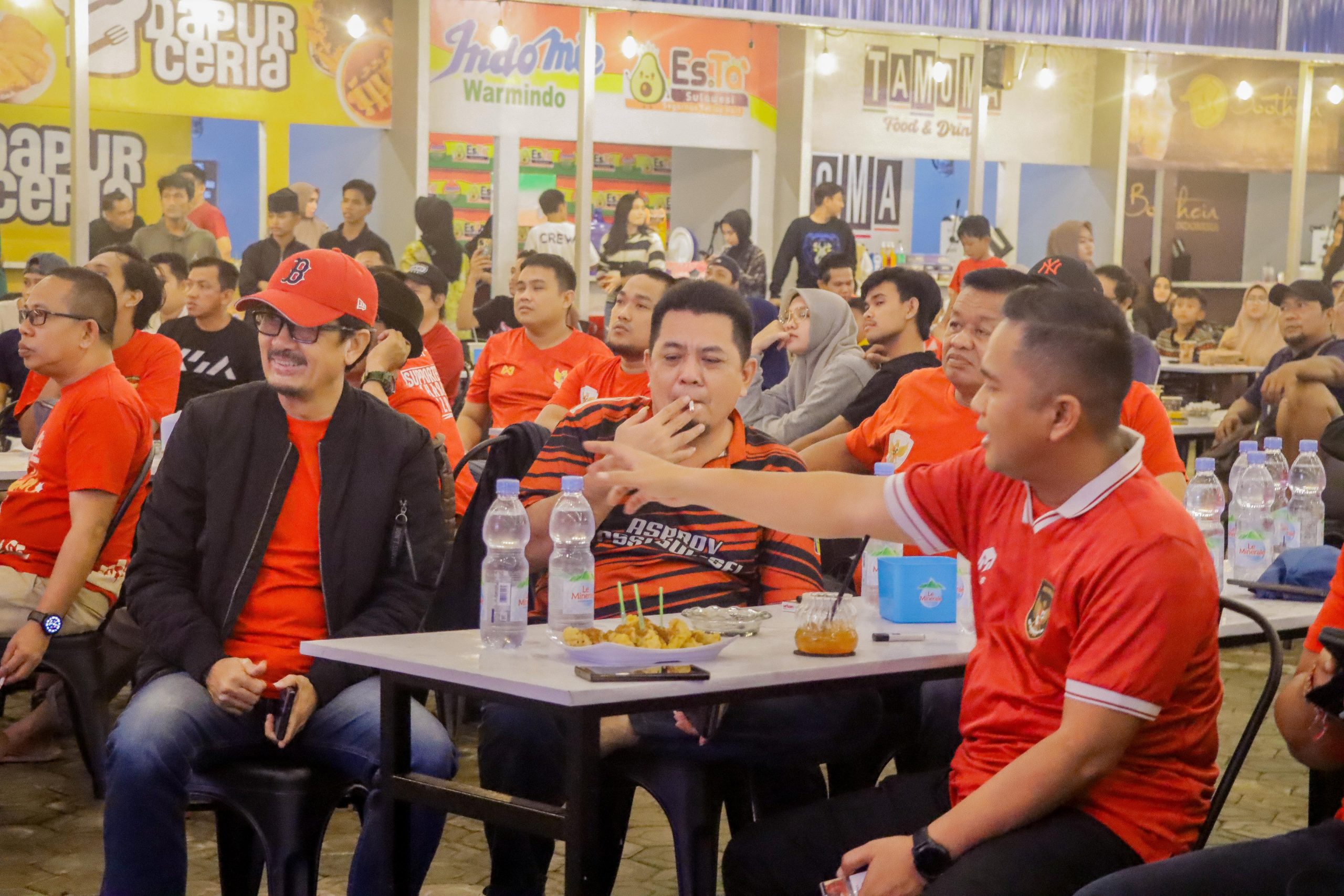 Acara Nonton Bareng Timnas U23 dilaksanakan di Corawali Foodcourt Kecamatan Watang Sawitto Kabupaten Pinrang yang dihadiri ratusan masyarakat Kabupaten Pinrang,Senin(29/04/24).