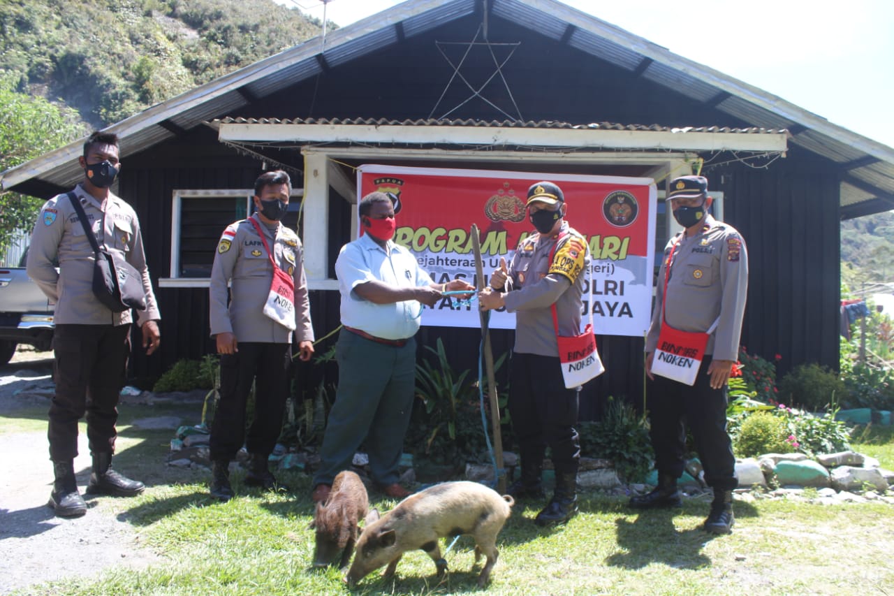 ” Hari ini juga kami bersama Satgas Binmas Noken Polri akan memberikan bantuan 2 ekor anak babi kepada Bapak Ketua Klasis GIDI untuk selanjutnya dipelihara maupun dikembang biakkan agar kesejahteraan seluruh warga masyarakat GIDI Jemaat Emaus dapat meningkat terlebih saat ini kita masih berada dalam situasi pandemi virus corona ” cetus Kompol Ridwan.