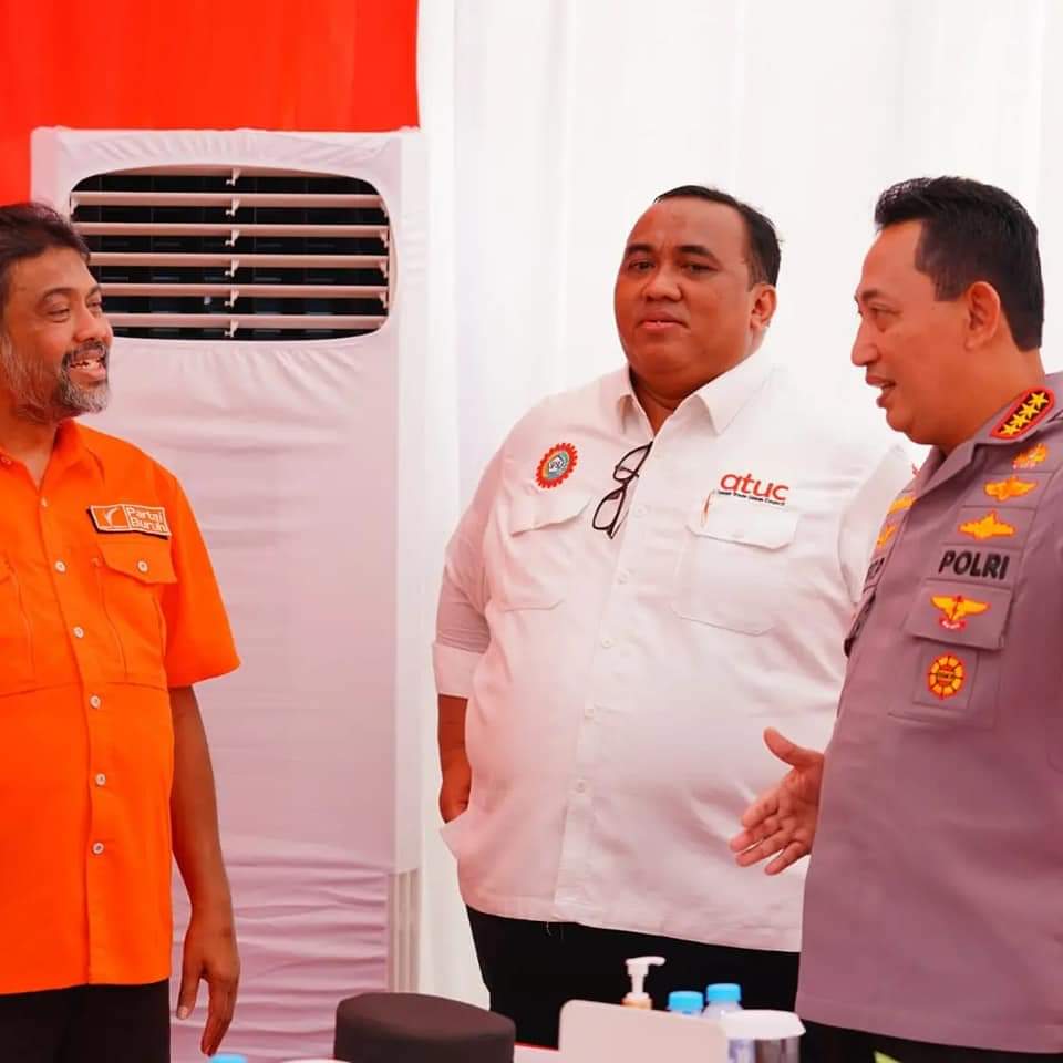 “Dalam kesempatan ini saya, Kepala Kepolisian Republik Indonesia menyampaikan kepada seluruh rekan-rekan konfederasi, rekan-rekan aliansi, rekan-rekan yang tergabung dalam serikat buruh Indonesia. Selamat Hari Buruh Internasional,” kata Sigit.