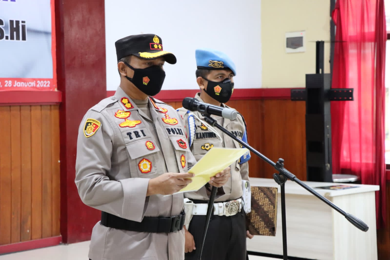 REAKSIMEDIA.COM | Gowa – Kapolres Gowa AKBP. Tri Goffarudin. P. SIK.,MH memimpin pelaksanaan serah terima jabatan Kapolsek Bontonompo Polres Gowa di Aula Endra dharmalaksana pada Jumat (28/1/2022) pukul 08.00 Wita.