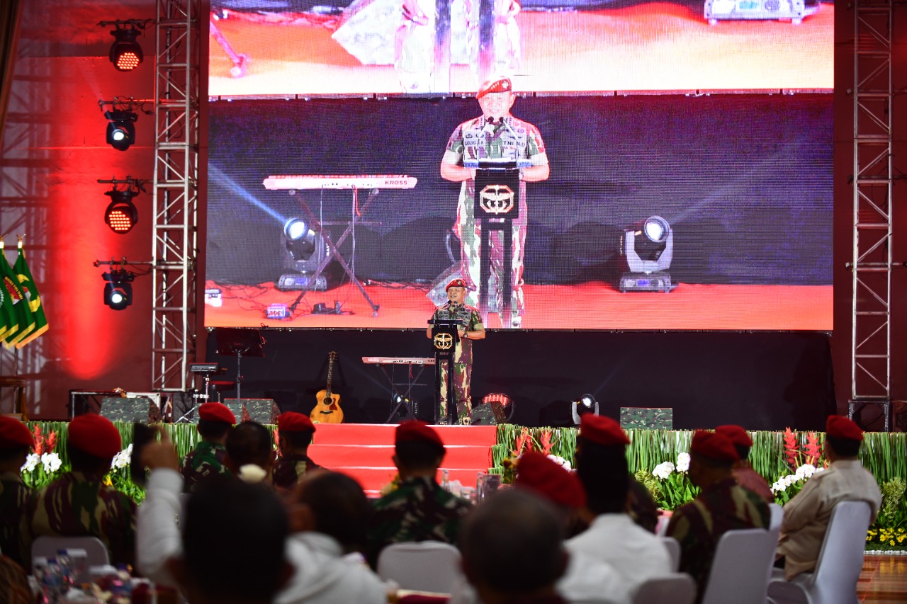 “Prajurit Kopassus harus menjadi prajurit yang berisi namun tidak sombong karena tantangan yang dihadapi saat ini lebih berat, yaitu tidak hanya menghadapi dunia nyata, namun juga menghadapi dunia maya,” tandas Agum.