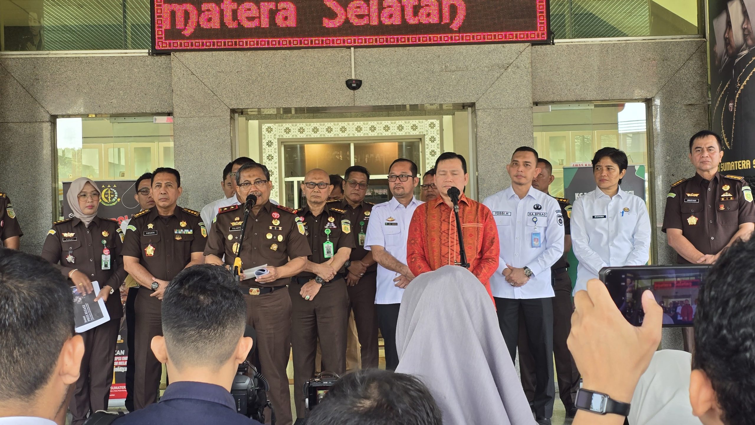 REAKSIMEDIA.COM | Sumatera Selatan – Pada hari Rabu 21 Agustus 2024, Kepala Kejaksaan Tinggi Sumatera Selatan Bpk. Dr. Yulianto, S.H., M.H. didampingi para Asisten, Kabag TU dan Kasi Penkum menyambut Kehadiran Pj. Gubernur Sumatera Selatan Bpk. Elen Setiadi, S.H., M.S.E beserta rombongan dalam rangka melaksanakan serah terima Aset milik Pemerintah Provinsi Sumatera Selatan yang berhasil diselamatkan oleh Kejaksaan Tinggi Sumatera Selatan.