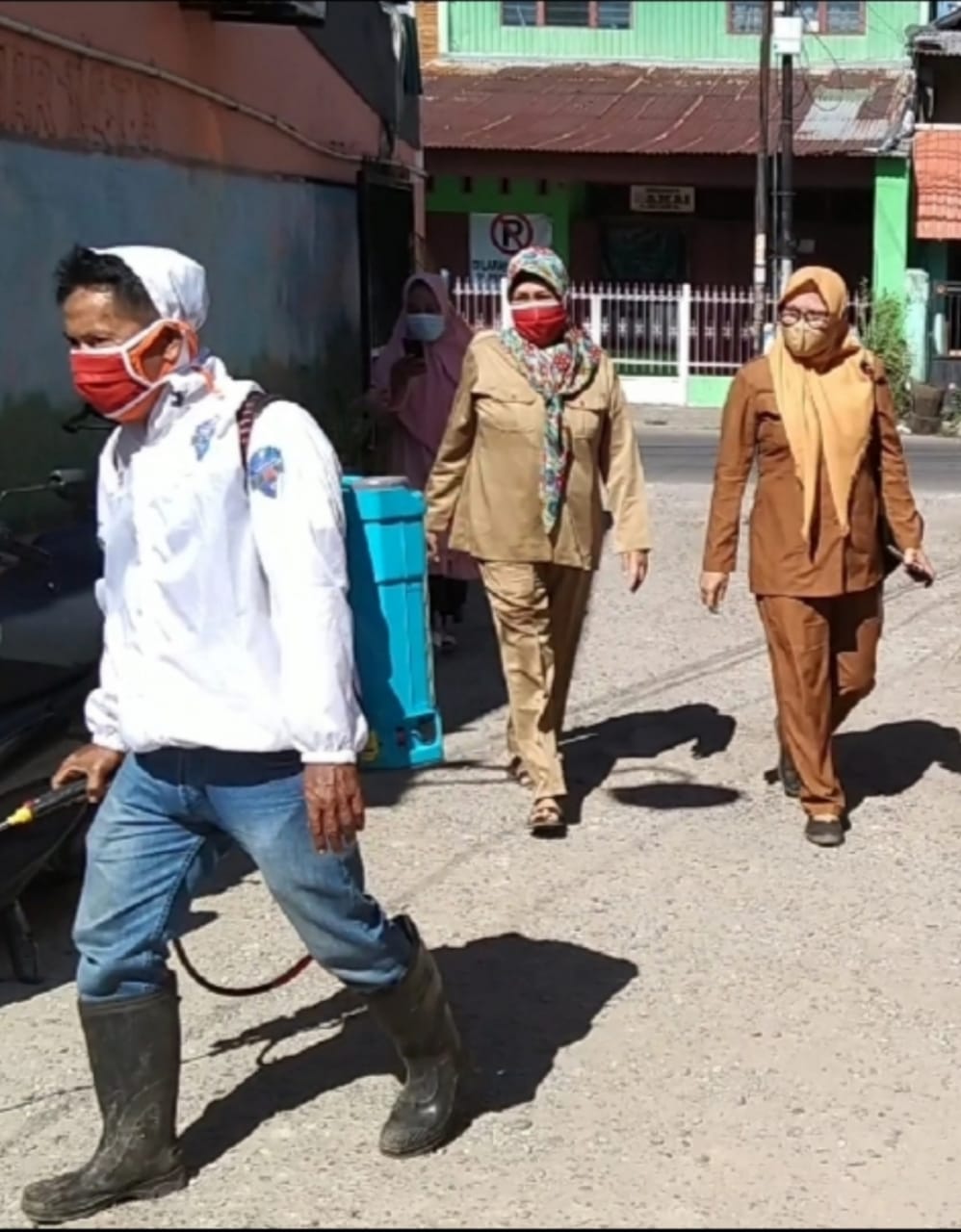 Dengan dilengkapi Alat Pelindung Diri (APD), kegiatan penyemprotan berjalan dengan lancar sampai selesai, demikian penyampaian ibu Lurah saat itu memandu giat tersebut.