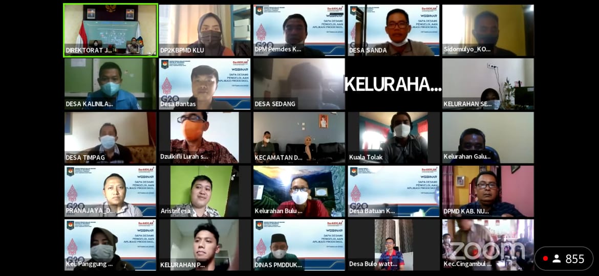 Sebagai informasi, webinar tersebut dihadiri oleh berbagai peserta dari daerah, seperti Dinas Pengendalian Penduduk Keluarga Berencana, Pemberdayaan Masyarakat dan Desa (DP2KBPMD), Kepala Dinas Pemberdayaan Masyarakat dan Pemerintahan Desa (PMPD), Dinas Kependudukan dan Pencatatan Sipil, camat, lurah, dan kepala desa di sejumlah wilayah Indonesia.
