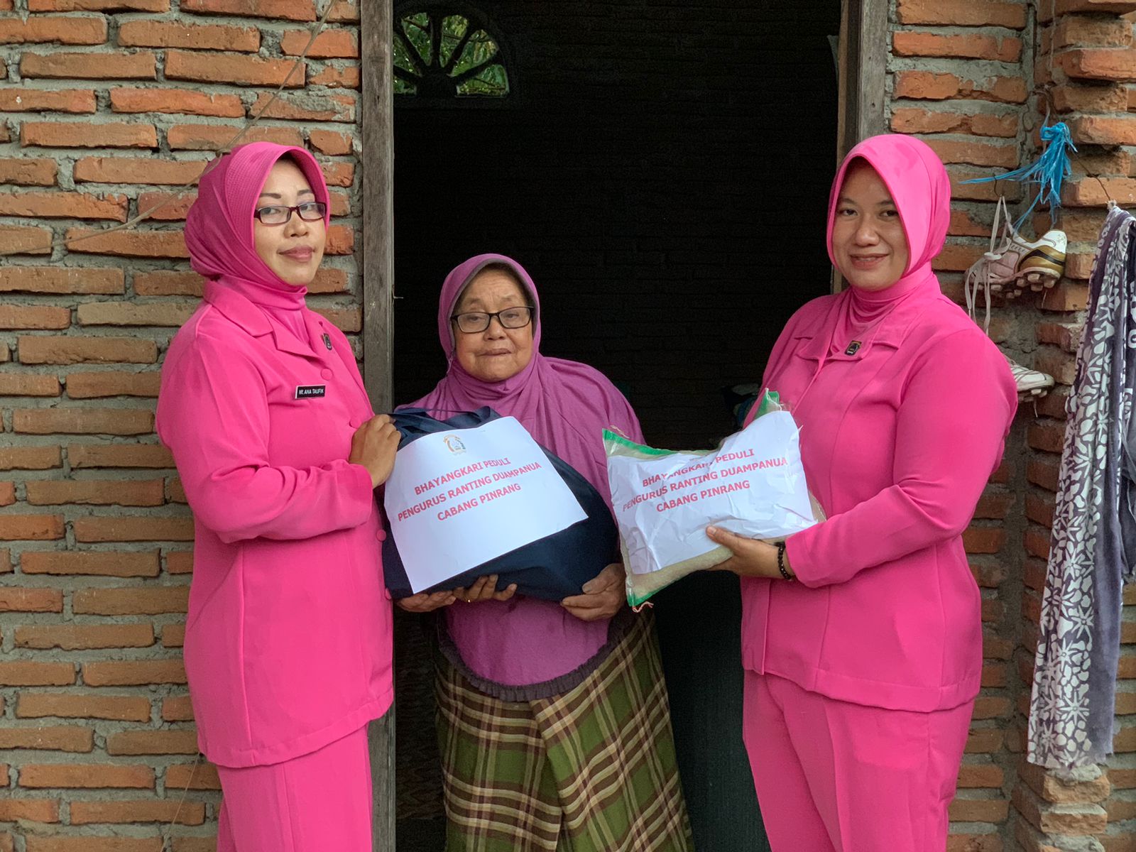 Pengurus Bhayangkari Ranting Duampanua Di Dampingi Kapolsek Duampanua Menyerahkan Bantuan Sembako Ke Warga Kurang Mampu