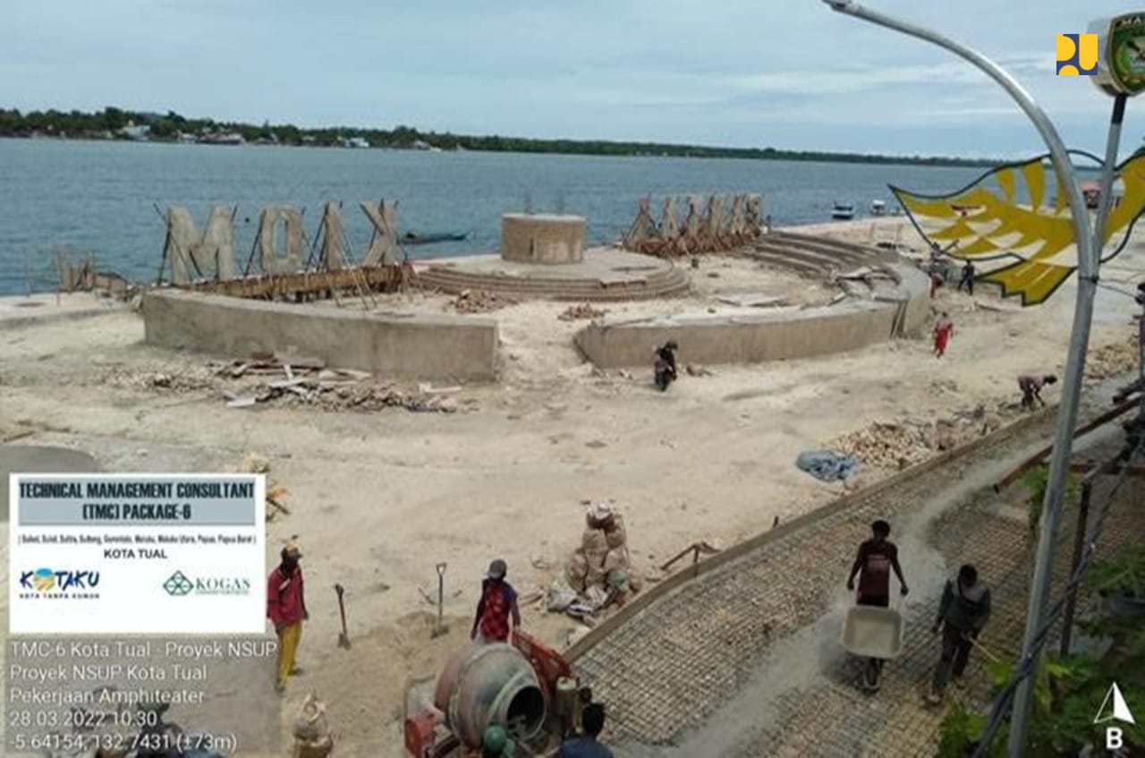 REAKSIMEDIA.COM | Jakarta – Kementerian Pekerjaan Umum dan Perumahan Rakyat (PUPR) tengah menyelesaikan penataan kawasan kumuh Apolo dan Pesisir Selatan Kota Tual yang berada di sekitar Pantai Kiom Provinsi Maluku. Kegiatan Peningkatan Kualitas Permukiman Kumuh (NSUP) kawasan pesisir pantai tersebut akan menciptakan kualitas lingkungan yang lebih baik sekaligus menjadi destinasi wisata baru kebanggaan masyarakat Kota Tual dengan konsep waterfront city untuk wisata air.
