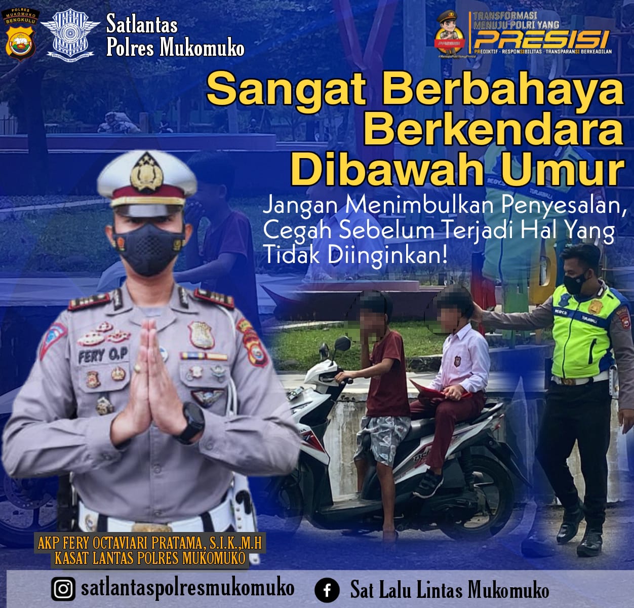 “Mohon peran aktif orang tua, jangan memberikan kebebasan kepada anak anak yang masih dibawah umur untuk berkendara karena sangat berbahaya sekali, jangan sampai menjadi penyesalan, cegah sebelum terjadi hal yang tidak di inginkan,” himbau Kasatlantas Polres Mukomuko.
