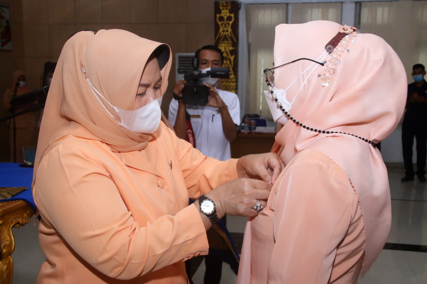 Pengukuhan pengurus berlangsung di Ruang Tapis, Setdakab Lampung Utara, Rabu (03/11/2021). Hadir juga Penasehat DWP Kabupaten Lampung Utara Hj. Nur Endang Sulastri Budi Utomo, S.Pd., M.M.