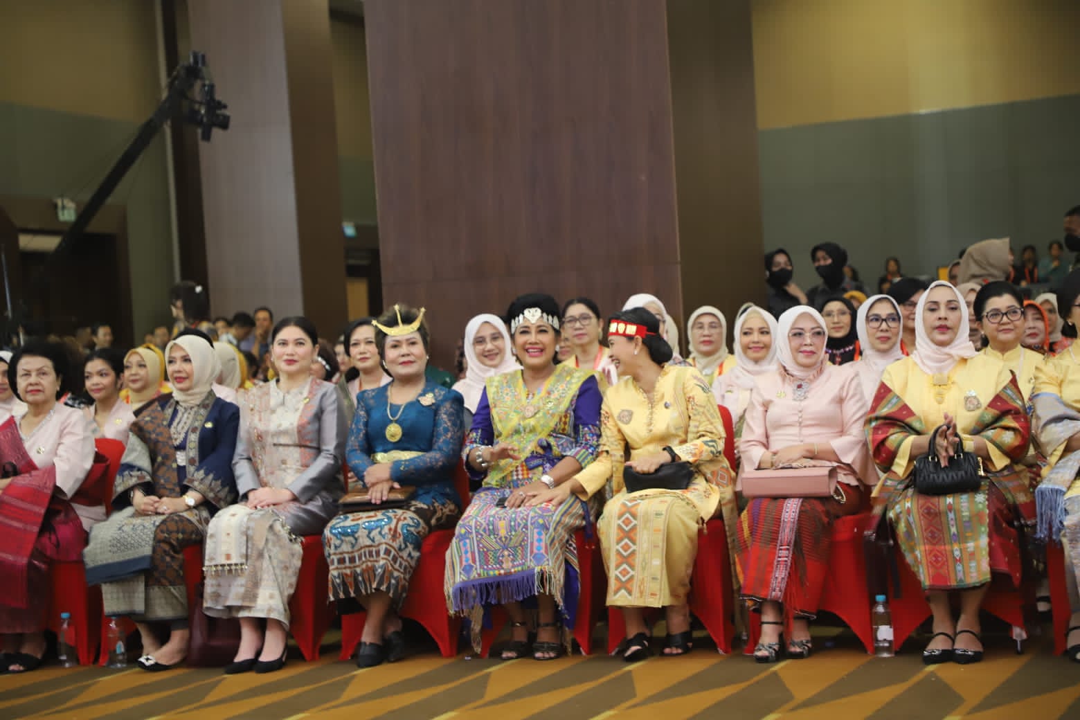 REAKSIMEDIA.COM | Medan – Ketua Umum (Ketum) Dharma Pertiwi Ny. Vero Yudo Margono mendampingi Ibu Negara Hj. Iriana Joko Widodo saat membuka acara Hari Ulang Tahun (HUT) Dewan Kerajinan Nasional (Dekranas) Ke-43 dan Expo Dekranas, bertempat di Santika Premiere Dyandra Hotel & Convention Medan, Sumatera Utara, Selasa, (16/05/2023).