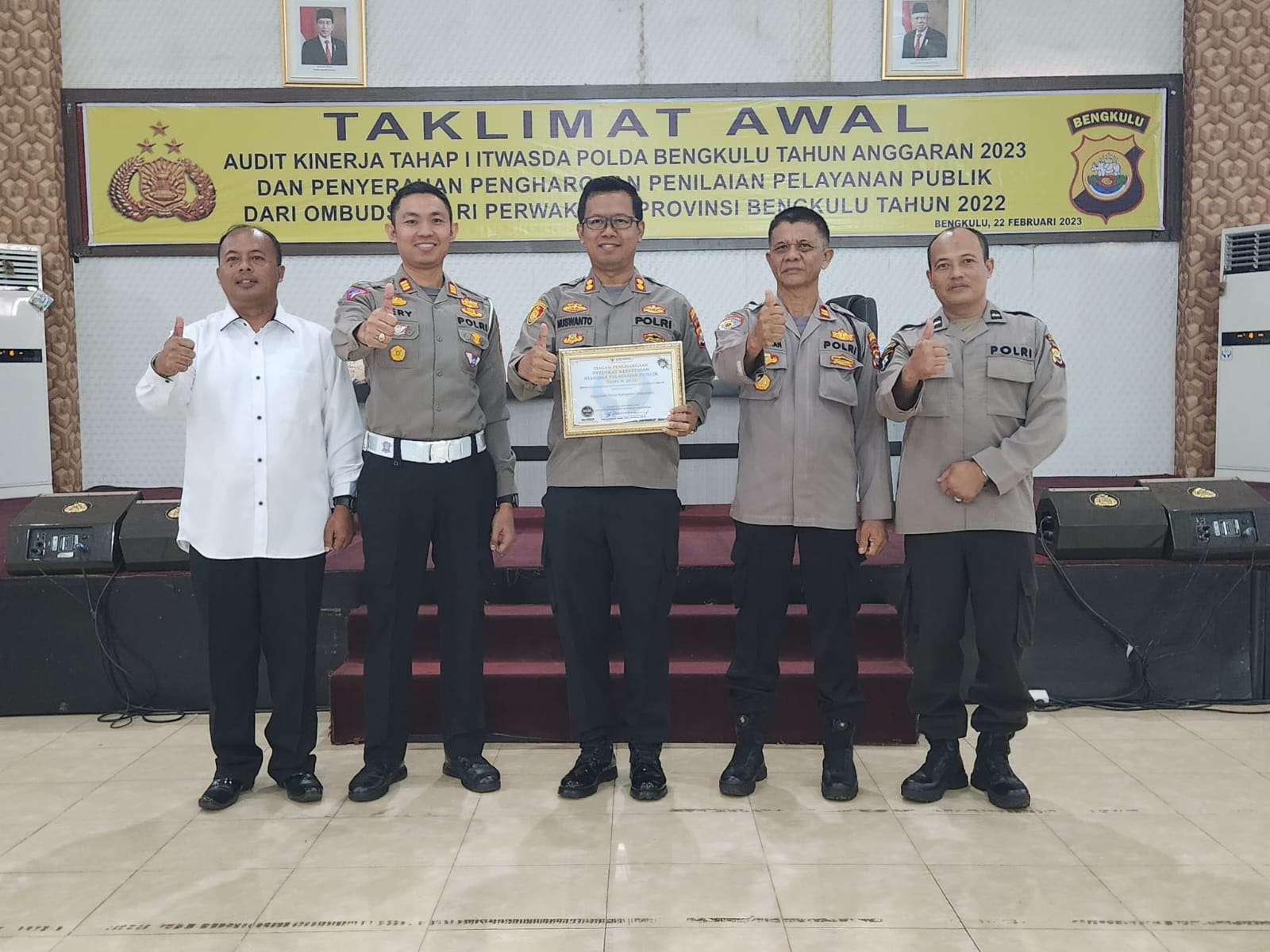Kapolres Mukomuko AKBP Nuswanto, S.H.,S.IK.,M.H yang didampingi sejumlah pejabat utama (PJU) Polres Mukomuko menerima penghargaan dari Ombudsman RI Perwakilan Provinsi Bengkulu, yang mana penghargaan itu didapatkan dari hasil kinerja Polres Mukomuko dari segi penilaian pelayanan publik yang dinilai secara langsung oleh Ombudsman RI perwakilan Provinsi bengkulu.