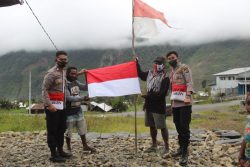 “Selain membagikan Bendera Merah Putih, kami juga mengajak kepada seluruh masyarakat Kampung Jiginigme untuk bersama-sama dengan aparat TNI-POLRI untuk menjaga keamanan dan ketertiban di wilayah masing-masing, apabila ada orang baru yang mencurigakan agar segera laporkan kepada pihak keamanan ” terang Iptu Alaudin Patawary.