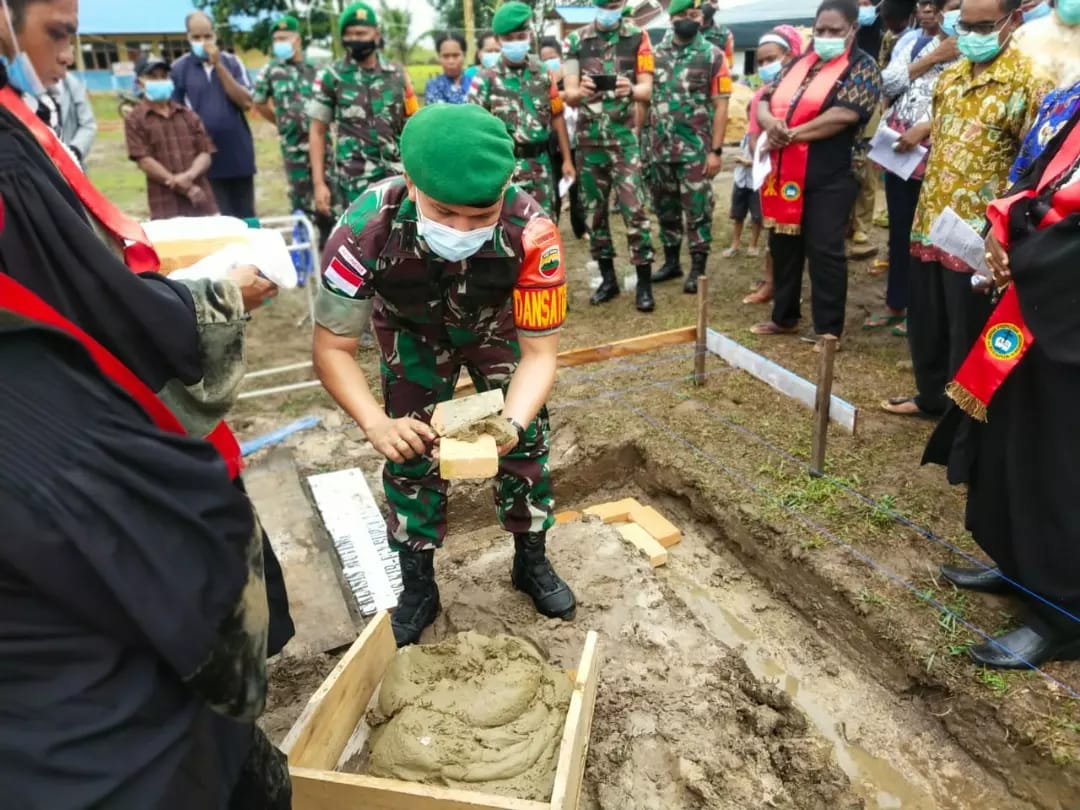 “Mari kita dukung pembangunan Gereja, kiranya mereka tetap setia kepada Tuhan dan tidak mudah menyerah dalam beribadah dan terus menjalani kehidupan meskipun dalam kondisi yang sulit saat ini”. Ucap Dansatgas pada sambutan Peletakan Batu Pertama dibangunnya gereja tersebut.