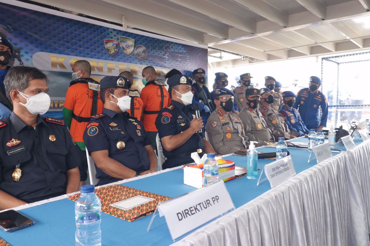 REAKSIMEDIA.COM | Natuna – Kapal Patroli Dit Polairud Baharkam Polri KP. Bisma – 8001 berhasil mengamankan 4 Unit Kapal Ikan Asing (KIA) berbendera Vietnam yang tengah melakukan pencurian ikan di laut Natuna Utara dan Hal tersebut disampaikan oleh Kabaharkam Polri Komjen. Pol. Drs. Arief Sulistyanto, M.Si didampingi oleh Kakorpolairud Baharkam Polri Irjen Pol Drs. Verdianto I. Bitticaca, M.Hum, Kapolda Kepri Irjen Pol Dr. Aris Budiman M.Si, Dirpolair Korpolairud Baharkam Polri Brigjen. Pol. Mohammad Yassin Kosasih, S.I.K., M.Si, Direktur Jenderal Pengawasan Sumber Daya Kelautan dan Perikanan Laksamana Muda TNI Adin Nurawaluddin, Dir Pemantauan dan Operasi Armada, Direktur PP, Kepala KPU Bea Cukai Batam, saat Konferensi Pers di Dermaga Pelabuhan Batu Ampar, Kota Batam, Selasa (31/8/2021).