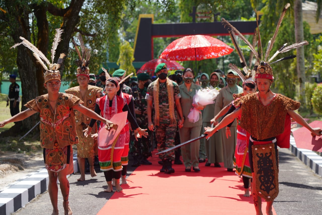 Kedatangan Mayjen TNI Sulaiman Agusto beserta rombongan disambut langsung oleh Danrem 121/Abw Brigjen TNI Pribadi Jatmiko, Ketua Persit KCK Koorcabrem 121, Para Kasi Korem 121/Abw, para Dandim dan Prajurit serta Persit.