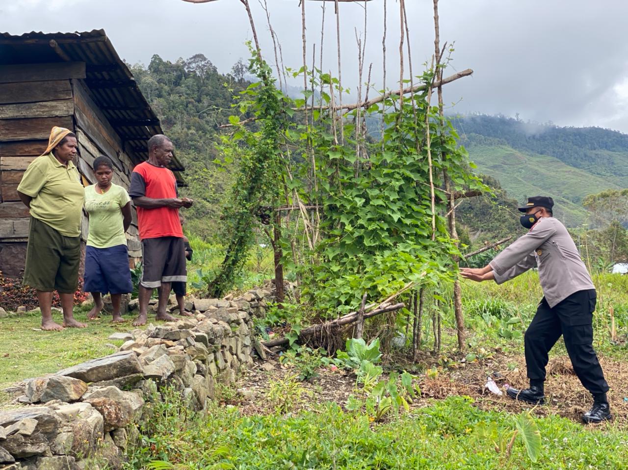 REAKSIMEDIA.COM | Puncak Jaya – Dalam rangka mempererat tali silahturahmi serta mendukung ketahanan pangan dimasa pandemi virus corona, Kepolisian Resor Puncak Jaya melalui Sat Binmas Polres Puncak Jaya menggelar kegiatan Sambang Kamtibmas sekaligus pemberian bantuan bibit sayuran terhadap warga masyarakat Kampung Jiginikme Distrik Irimuli Kabupaten Puncak Jaya, Senin (1/11 2021).