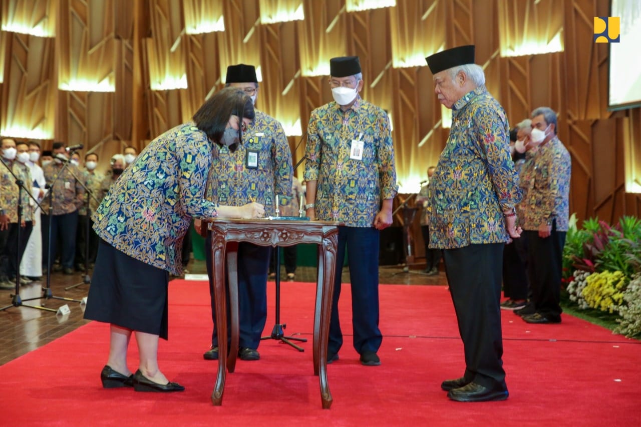 REAKSIMEDIA.COM | Jakarta – Menteri Pekerjaan Umum dan Perumahan Rakyat (PUPR) Basuki Hadimuljono melantik 8 Pejabat Tinggi Pratama dan 78 Pejabat Administrator di lingkungan Kementerian PUPR di Auditorium Kementerian PUPR, Rabu (11/1/2023). Pelantikan dilakukan untuk mengukuhkan dan menggantikan beberapa pejabat yang telah memasuki masa purna bakti dan dalam rangka reorganisasi.
