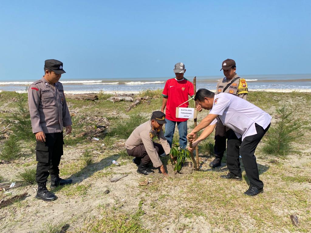 REAKSIMEDIA.COM | Mukomuko – Polsek Teramang Jaya mengadakan penanaman 100 bibit pohon dari berbagai jenis di Pantai Markisa Desa Pasar Bantal Kecamatan Teramang Jaya Mukomuko, Rabu (23/8/23).