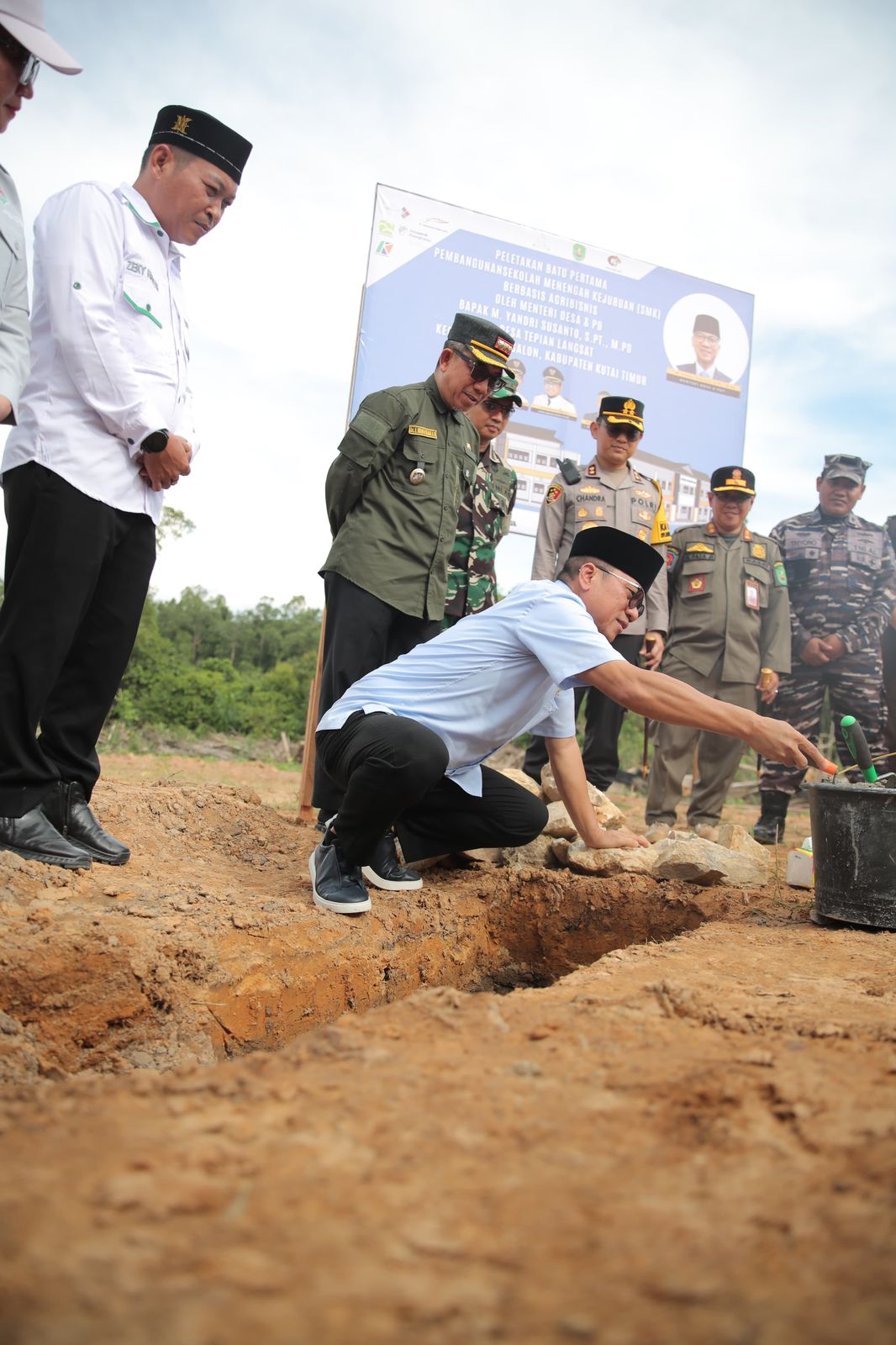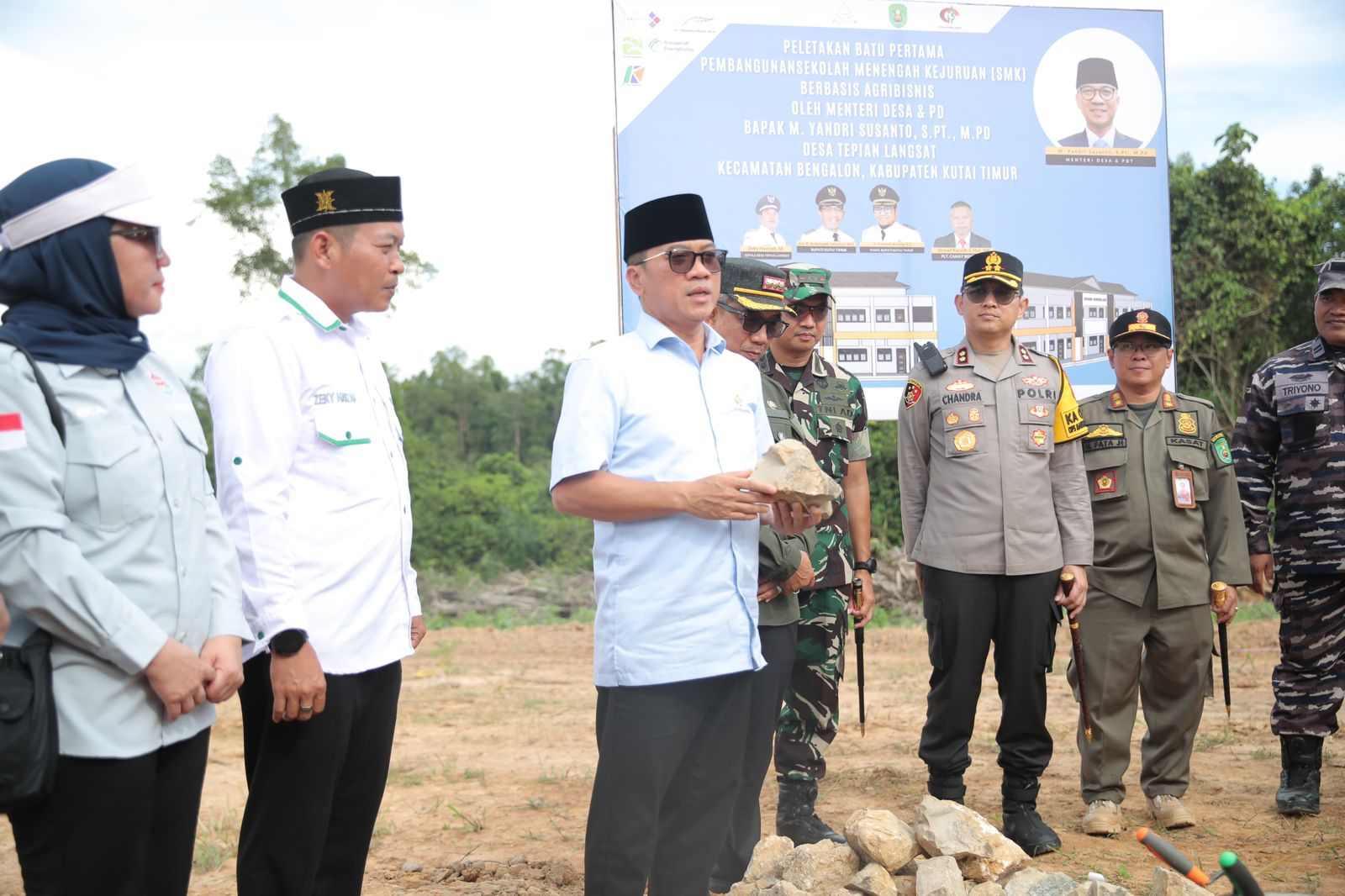 Dalam kunjungan ini, Mendes Yandri yang didampingi Bupati Kutai Timur, Anggota DPRD Kaltim Meninjau kantor koperasi dan melakukan peletakan batu pertama SMK berbasis agribisnis.