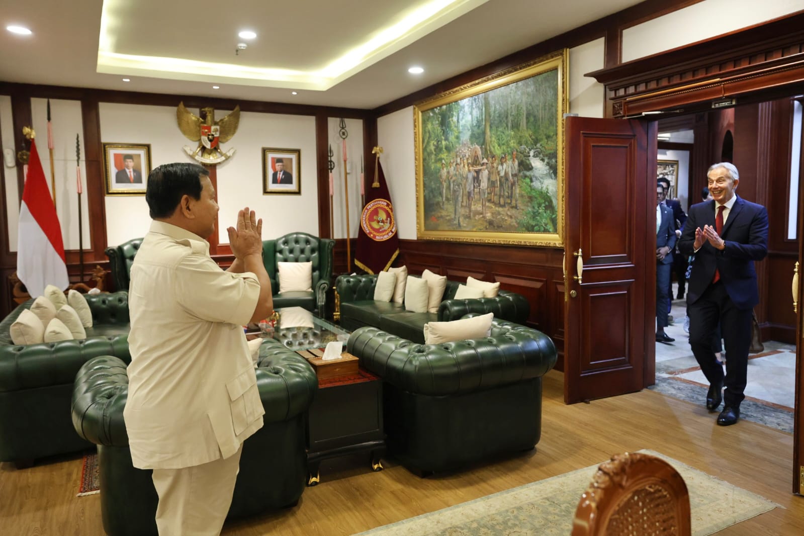 “Terima kasih atas kunjungan H.E. Mr. Tony Blair, ke Kementerian Pertahanan,” sapa Menhan Prabowo.