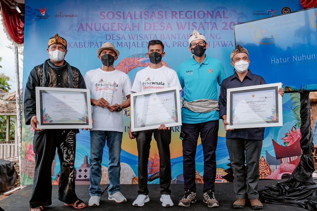 “Saya mengajak Pak Wakil Bupati (Majalengka) untuk mendaftarkan lebih banyak lagi desa wisata di Majalengka untuk ikut ADWI 2022. Kita akan kawal karena kita ingin Jawa Barat, sesuai tagline-nya, Jabar juara,” kata Menparekraf Sandiaga Uno saat melakukan visitasi dan sosialisasi ADWI 2022 di Desa Wisata Bantaragung, Kabupaten Majalengka, Jawa Barat, Minggu (6/3/2022).