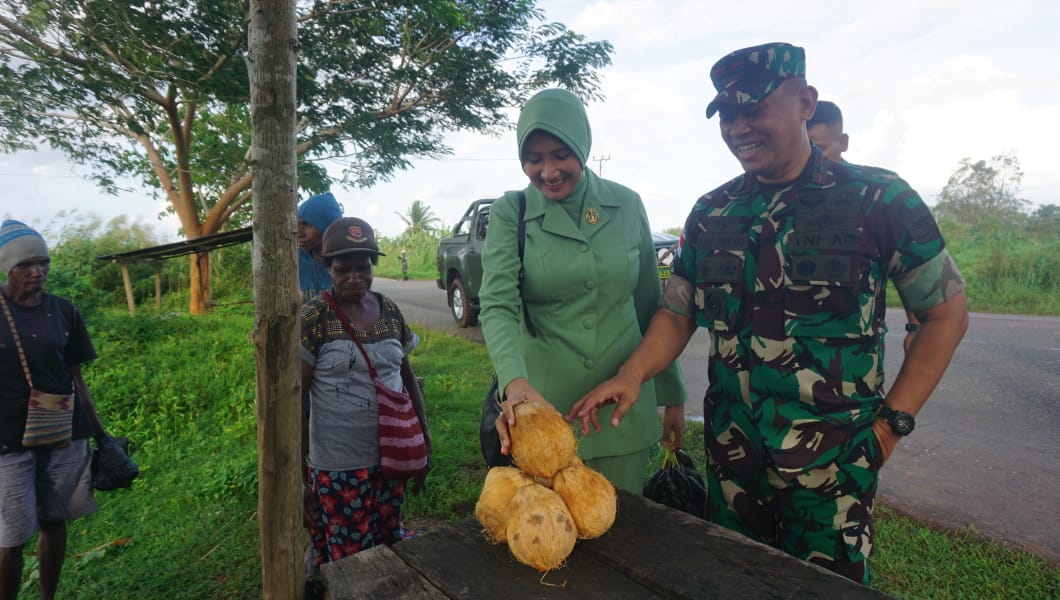 Danrem Brigjen Agus Widodo menyampaikan sangat tersentuh melihat mama-mama seorang diri menjual hasil menanam di kebun dengan memanfaatkan sumber daya alam sebagai lahan mengais rezeki. “Mudah-mudahan ini dapat membantu pendapatannya hari ini dan dapat segera pulang ke rumah untuk berkumpul sama keluarganya,” ucapnya.