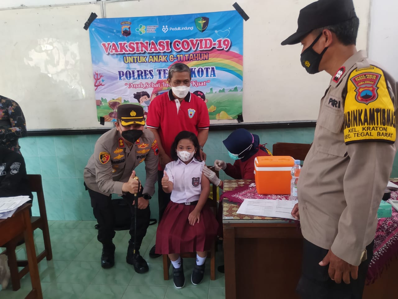 Dalam kegiatan monitoring tersebut Kapolres menyampaikan bahwa Polres Tegal Kota berkonsisten menggelar kegiatan Vaksinasi Merdeka Anak usia 6 – 11 tahun secara terus menerus dan berkesinambungan. Hal ini dilakukan untuk mendukung program pemerintah dalam rangka percepatan capaian vaksinasi Nasional yang digelar di seluruh wilayah Indonesia.