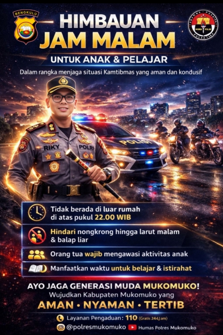 Jaga Kamtibmas Aman & Kondusif, Polres Mukomuko Terapkan Himbauan Jam Malam Untuk Anak dan Pelajar