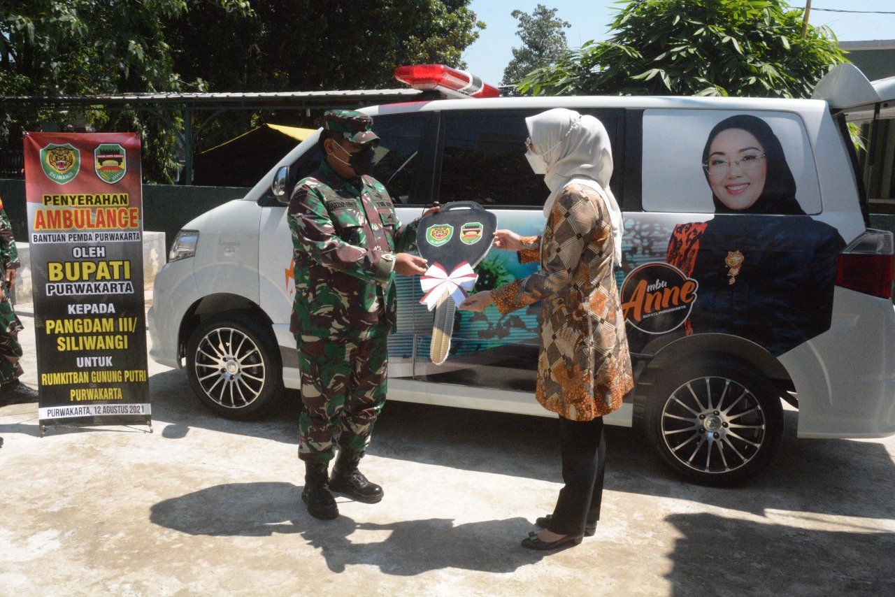 Diakhir kegiatan, Pangdam III/Slw Mayjen TNI Nugroho Budi Wiryanto yang didampingi Ketua Persit KCK Daerah III/Slw Ny. Suci Nugroho serta disaksikan para Pejabat Utama Kodam III/Siliwangi, menerima bantuan berupa satu unit mobil Ambulance yang diserahkan oleh Bupati Purwakarta.