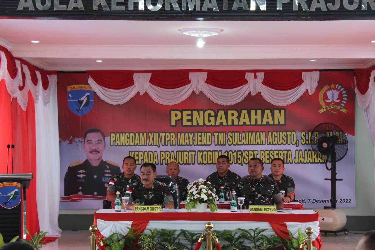 Saat pengarahan, Pangdam XII/Tpr Mayjen TNI Sulaiman Agusto mengatakan, bahwa berdasarkan hasil survei dari beberapa lembaga survei saat ini TNI merupakan institusi dengan tingkat kepercayaan publik tertinggi, kurang lebih 93 persen.