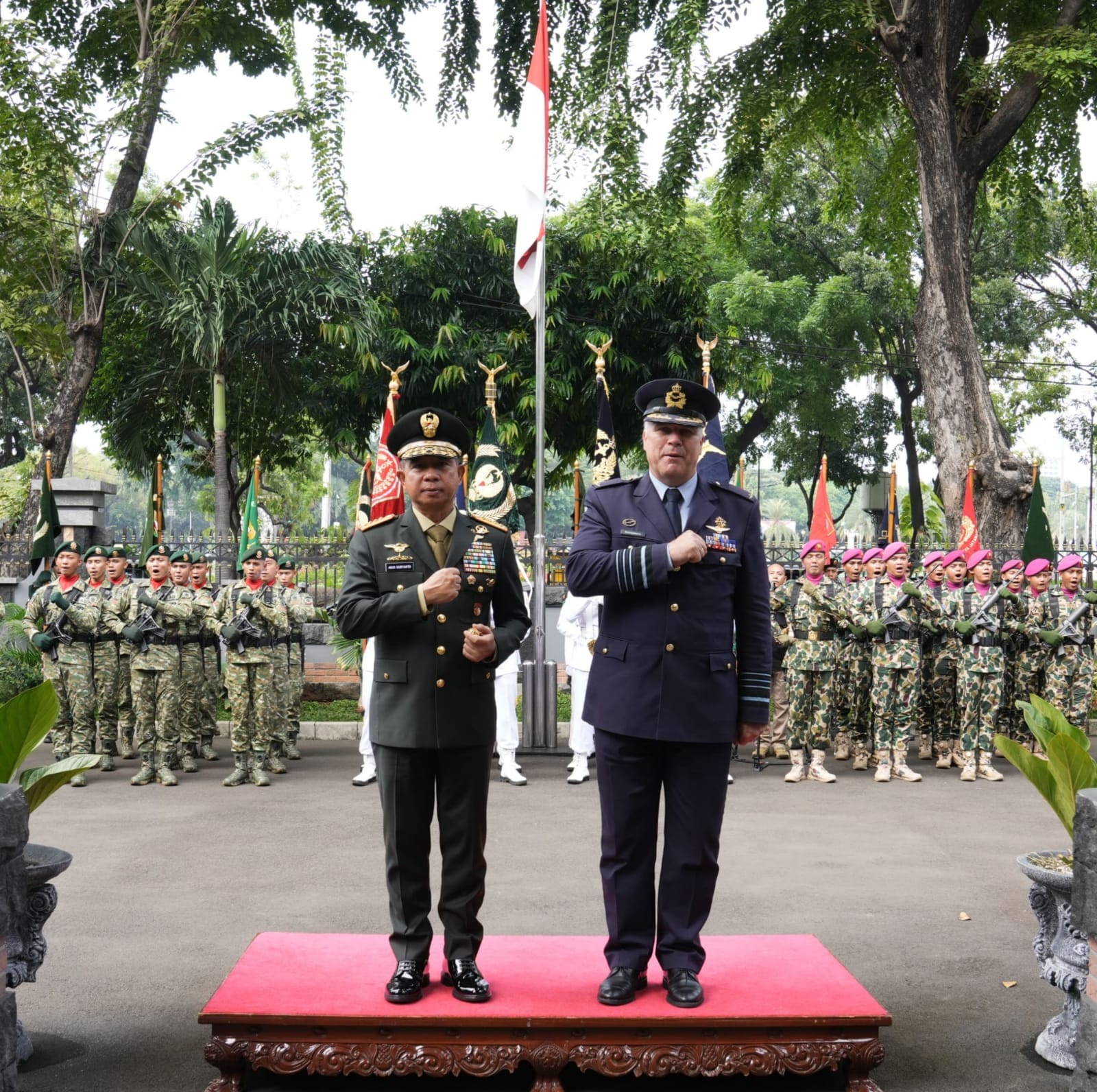 REAKSIMEDIA.COM | Jakarta – Panglima TNI Jenderal TNI Agus Subiyanto menerima Courtesy Call General Onno Eichlshelm Panglima Angkatan Bersenjata Belanda beserta beberapa delegasi, yang didahului jajar dan upacara kehormatan bertempat di Kantor Subden Mabes TNI, Jakarta Pusat, Senin, (2/06/2025).