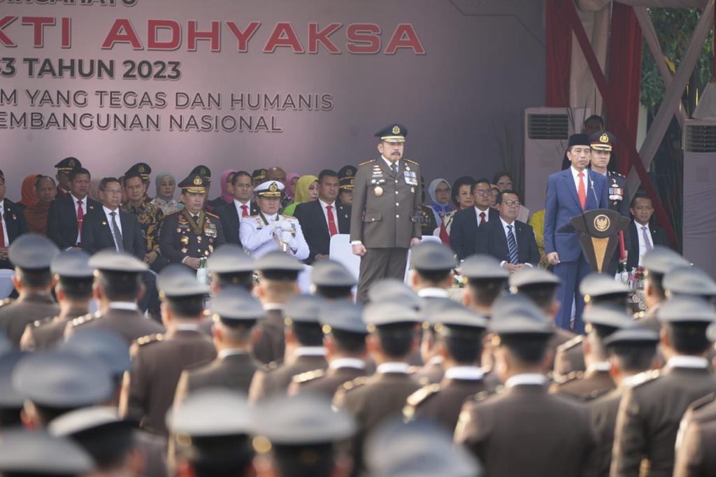 REAKSIMEDIA.COM | Jakarta – Panglima TNI Laksamana TNI Yudo Margono menghadiri upacara Hari Bhakti Adhyaksa ke-63 Tahun 2023 bertemakan “Penegakan Hukum Yang Tegas Dan Humanis Mengawal Pembangunan Nasional”, bertempat di lapangan Badan Diklat Kejaksaan RI, Pasar Minggu, Jakarta Selatan, Sabtu (22/07/2023).