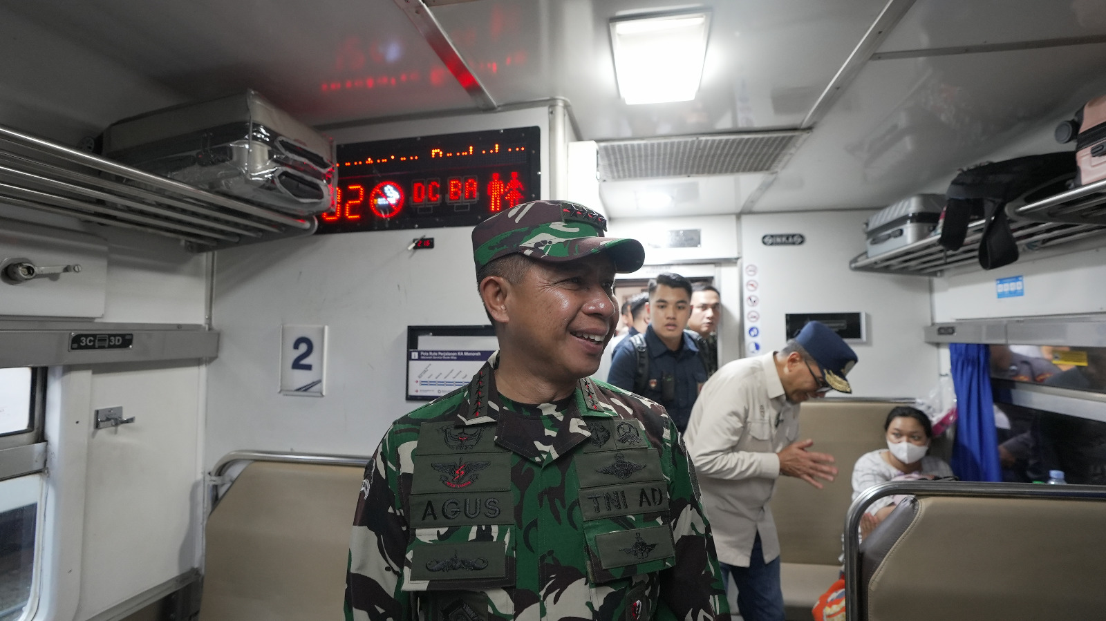 Sebelumnya Panglima TNI terlihat berkeliling dan memasuki gerbong KA untuk meninjau dan menyapa para pemudik yang hendak pulang ke kampung halaman. “Hati-hati di jalan, selamat sampai tujuan dan salam untuk kelurga di kampung halaman,” ucapnya.