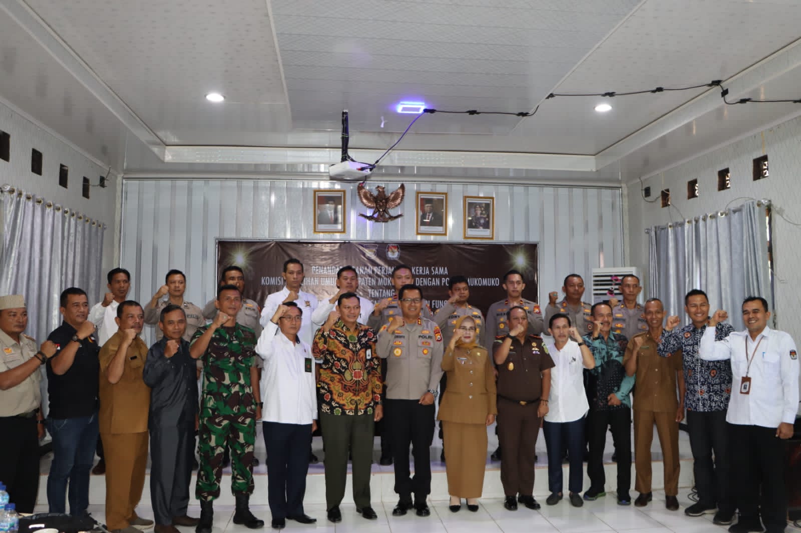 Diakhir kegiatan usai sambutan dari Kapolres Mukomuko dan Ketua KPU Kab. Mukomuko, dilanjutkan dengan penandatangan perjanjian kerjasama antara kedua belah pihak disaksikan oleh Wakil Bupati Mukomuko, Ketua DPRD Kab. Mukomuko, Kajari Mukomuko, Dandim 0428 Mukomuko, Ketua Bawaslu, Ketua Pengadilan Negeri Kab. Mukomuko, Kapolsek dan Personil Polres Mukomuko dan Instansi terkait.