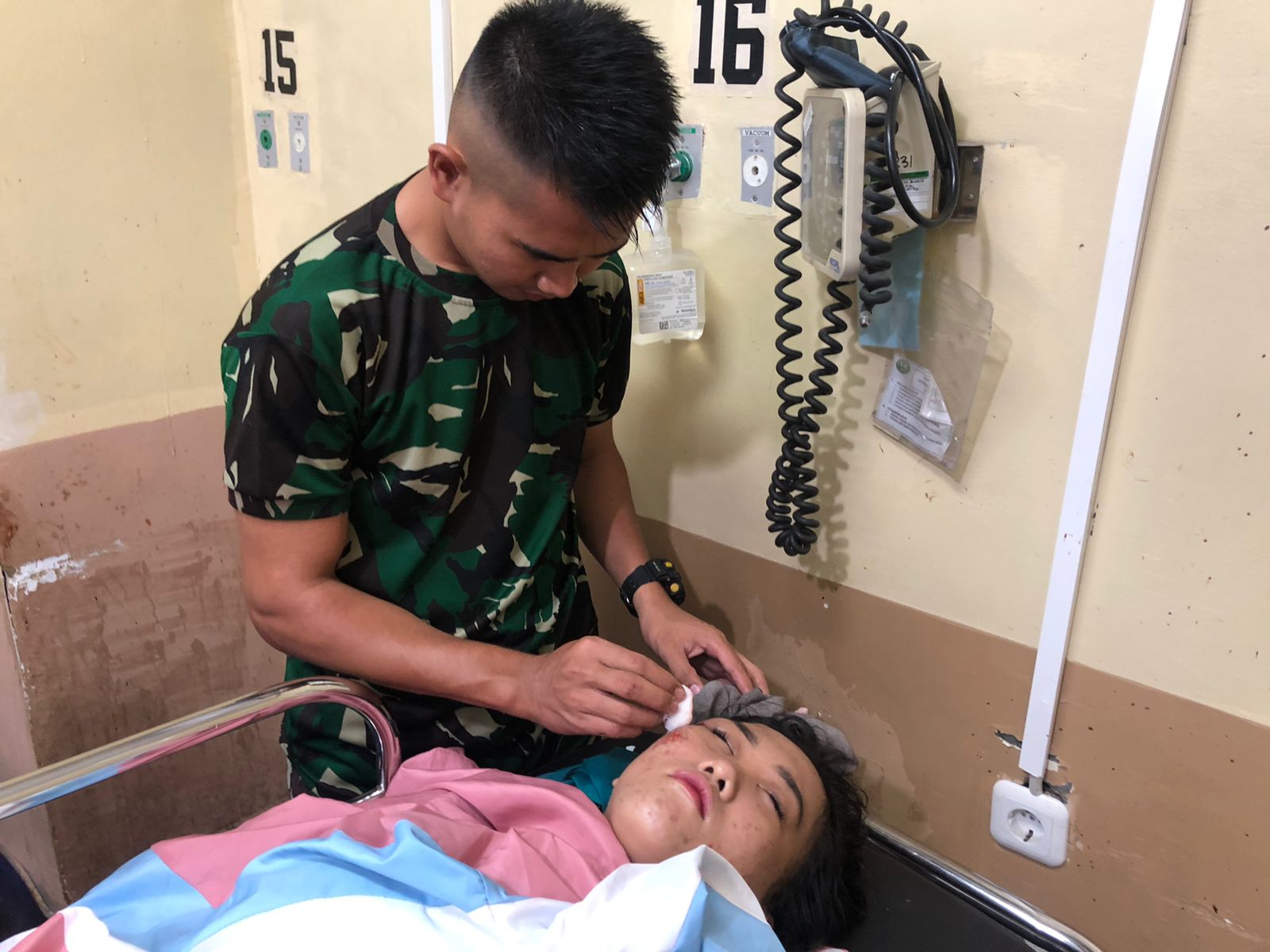Korban atas nama Indry Andriny masih warga Cianjur dengan menggunakan Sepeda motor Mengalami luka-luka di bagian kaki dan sempat tidak sadarkan diri dikarenakan terjadi benturan dengan aspal dan langsung dilarikan ke RS. Sayang, Cianjur dengan menggunakan kendaraan ambulan Yonif Raider 300 untuk diberikan penanganan secara medis.