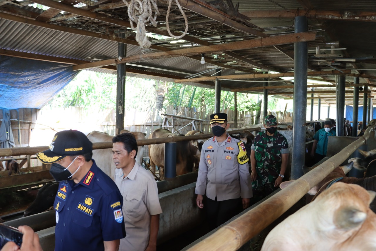 REAKSIMEDIA.COM | Cilacap – Bupati Cilacap Tatto Suwarto Pamuji bersama Forkopimda Kapubaten Cilacap Mengecek Kesiapan Hewan Qurban. Jumat, 08 Juli 2022.