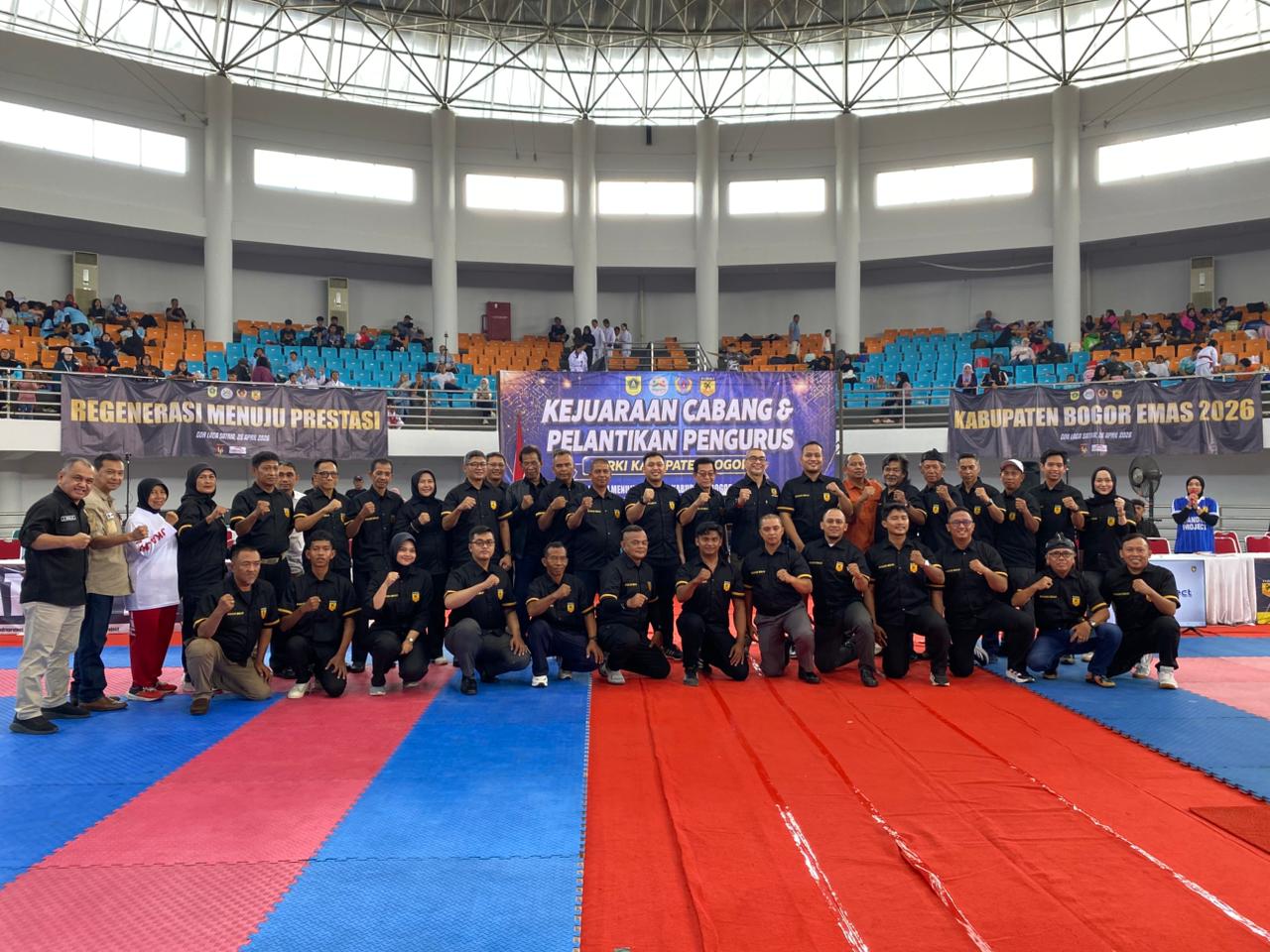 “Kabupaten Bogor ini sangat kaya dengan talenta atlet termasuk pada cabor karate. Hal inilah yang menjadi dasar utama bagi Forki Kabupaten Bogor untuk tetap berkomitmen menurunkan 100 persen atlet binaan sendiri dalam Porprov Jabar 2026 bulan November mendatang, ” ujar Muhammad Taufan Sahara Putra, usai pelantikan pengurus Forki Kabupaten Bogor periode 2026 – 2030 di GOR Laga Satria, Pakansari, Cibinong, Minggu (26/4/2026)