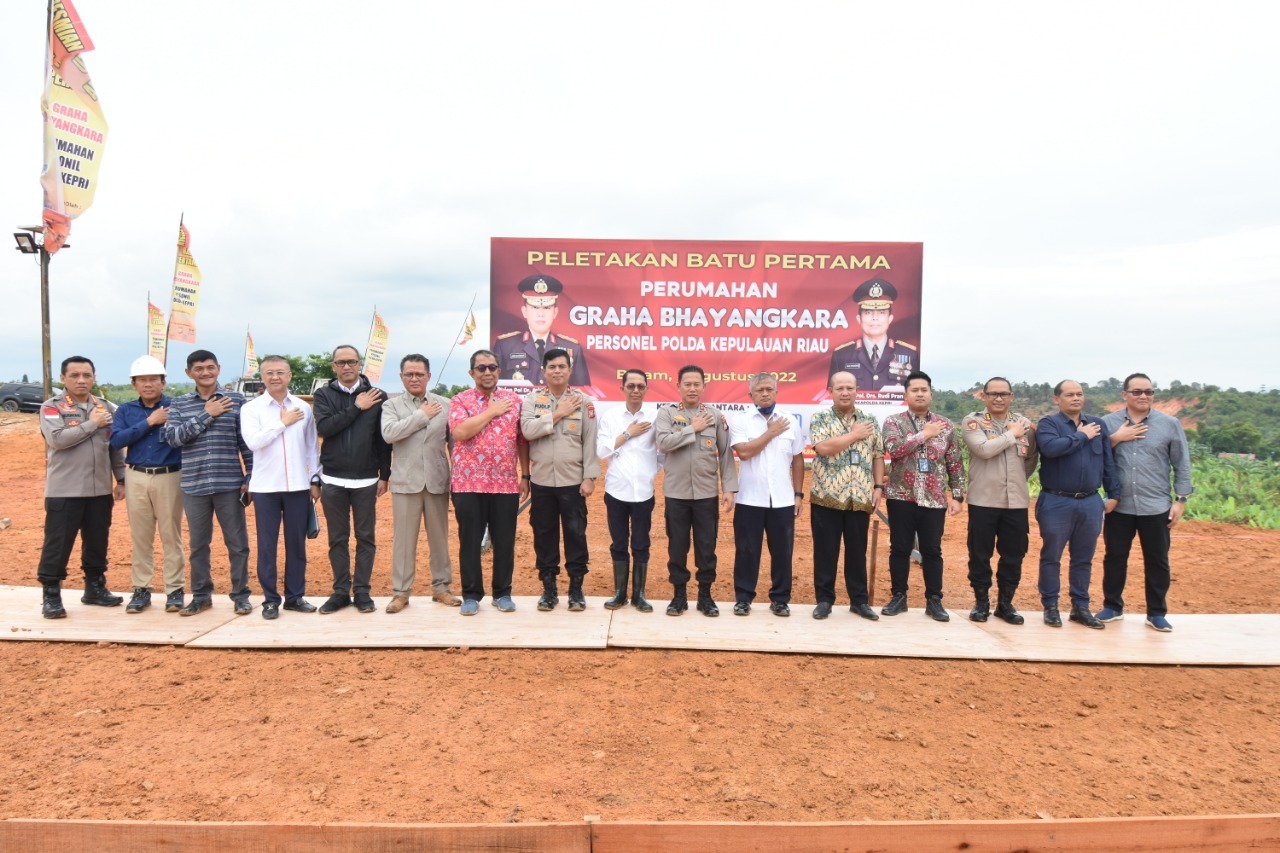 REAKSIMEDIA.COM | Batam – Peletakan batu pertama pembangunan rumah murah bagi anggota Polri dan PNS Polri dalam rangka mendukung program prioritas Kapolri tentang peningkatan kesejahteraan personel Polri oleh Kapolda Kepri Irjen Pol. Dr. Aris Budiman, M.Si., didampingi Wakapolda Kepri Brigjen Pol. Drs. Rudi Pranoto dan dihadiri oleh Irwasda Polda Kepri, Wakil Walikota Batam, PJU Polda Kepri, Ketua DPRD Kota Batam dan Dir pengamanan aset BP Batam di Lahan Perumahan Graha Bhayangakra Polda Kepri, Kelurahan Sambau, Kecamatan Nongsa, Kota Batam. Selasa (16/8/22).