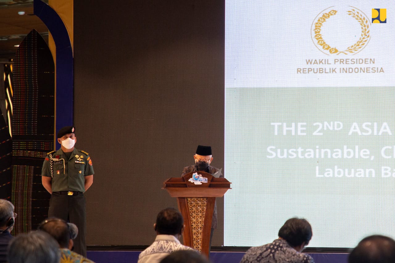 REAKSIMEDIA.COM | Labuan Bajo – Pemerintah Indonesia melalui Kementerian Pekerjaan Umum dan Perumahan Rakyat (PUPR) mengajak para negara peserta Asia International Water Week (AIWW) untuk menguatkan kerjasama bidang Sumber Daya Air (SDA), khususnya dalam mendukung program pencegahan stunting atau gangguan pertumbuhan pada anak balita melalui penyediaan sarana prasarana air bersih dan sanitasi yang baik. Hal tersebut disampaikan Wakil Presiden Republik Indonesia Ma’ruf Amin saat membuka acara Asia International Water Week (AIWW) Ke-2 yang diselenggarakan di Labuan Bajo, Provinsi Nusa Tenggara Timur, Senin (14/3/2022).