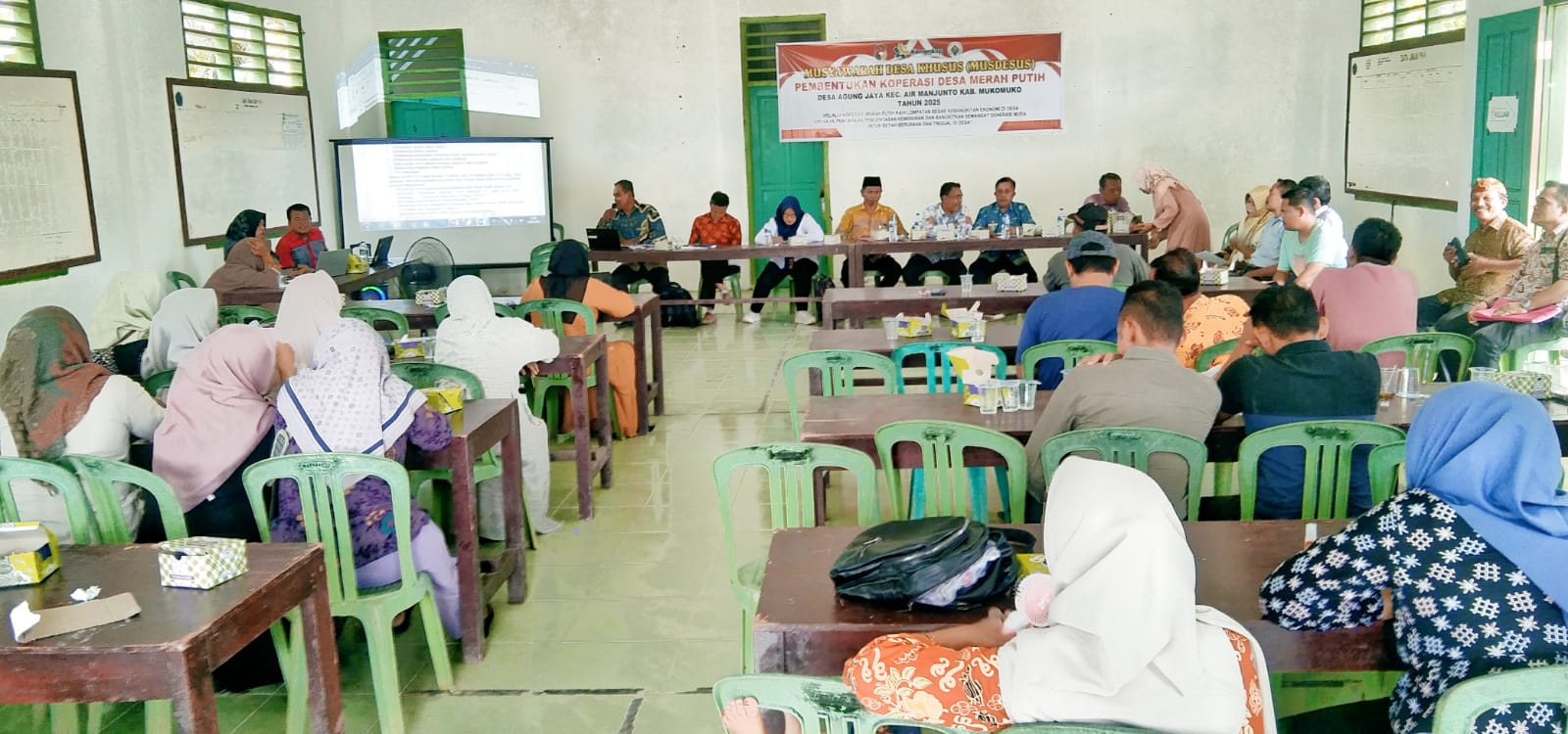 REAKSIMEDIA.COM | Mukomuko – Pemerintah Desa Agung Jaya melaksanakan Musdessus pembentukan KopDes Merah Putih Agung Jaya, acara yang digelar di Aula Kantor Desa Agung Kecamatan Air Manjunto Kabupaten Mukomuko turut dihadiri Dinas Perindagkop Kabupaten Mukomuko, Pemerintah Kecamatan Air Manjunto, Kades Agung Jaya dan perangkatnya, Ketua BPD dan anggota, Pendamping Desa, Bhabinkamtibmas, elemen masyarakat dan tokoh masyarakat serta warga Desa Agung Jaya, Kamis (22/5/25).