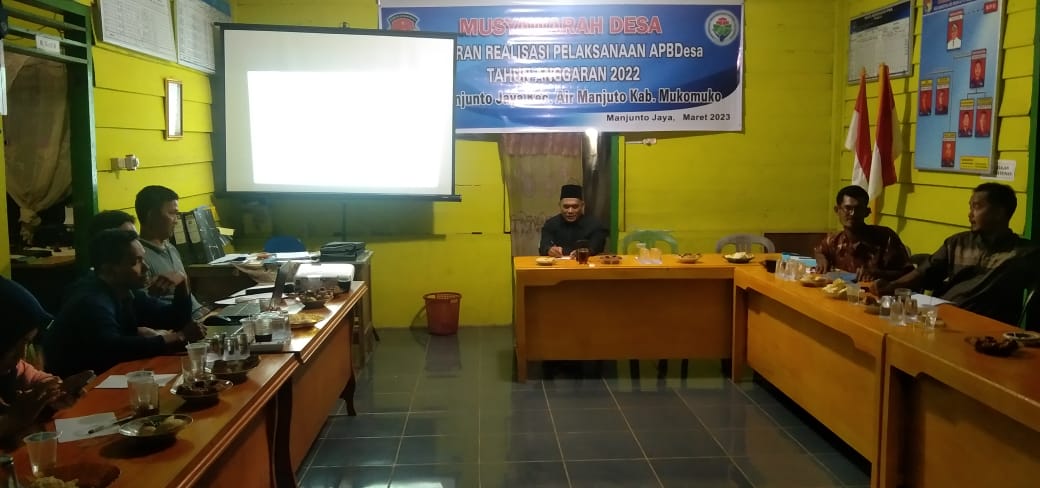 Kades Manjunto Jaya, Yasir dalam kata sambutannya pada kegiatan itu menyampaikan bahwa kegiatan ini dilakukan sesuai dengan hasil kesepakatan untuk melaksanakan Musdes Laporan Realisasi Pelaksanaan APBDesa Manjunto Jaya Tahun Anggaran 2022.