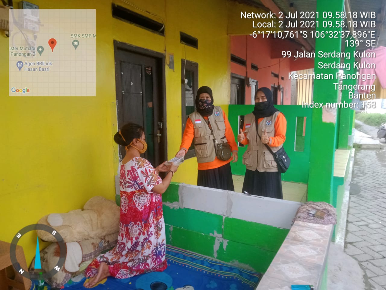 REAKSIMEDIA.COM | Kab. Tangerang – Sepekan giat penyemprotan Disinfektan di Desa Serdang Kulon Kecamatan Panongan, hari ini di sambung oleh pengurus PPKM kunjungi warga yang terdampak covid-19. Jumat (2/62021).