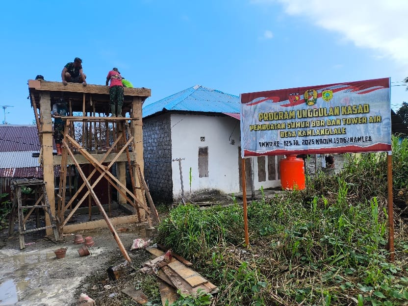 Kebut..!! Sumur Bor dan Tower Air Bersih Desa Kamanglale TMMD 125 Kodim 1506/Namlea Capai 57 %