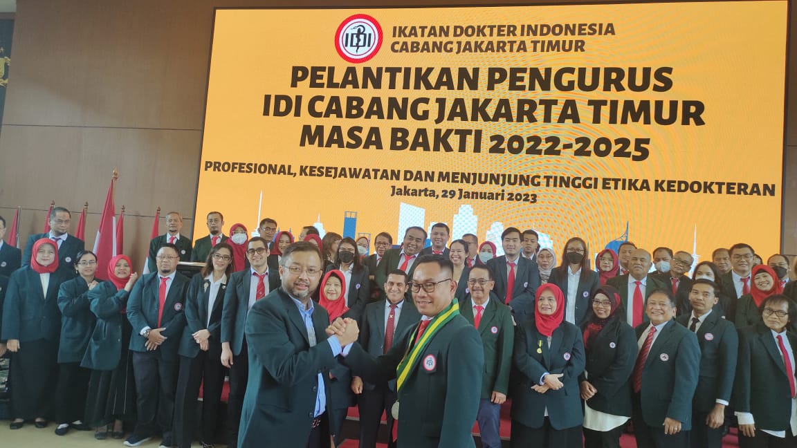 REAKSIMEDIA.COM | Jakarta – Pengurus Ikatan Dokter Indonesia (IDI) Cabang Jakarta Timur periode 2022-2025 resmi dilantik dan dikukuhkan. Prosesi pelantikan dan pengukuhan ini secara resmi dipimpin langsung Dr. Aldrin Neilwan P., S.pAK, M.Biomed, (Onk) MARS, MKes, SH Ketua IDI Wilayah DKI Jakarta di Rumah Sakit Polri Said Soekanto Jl. Raya Bogor KM 01, Kramat Jati, Jakarta Timur, DKI Jakarta, Minggu (29/01/2023).