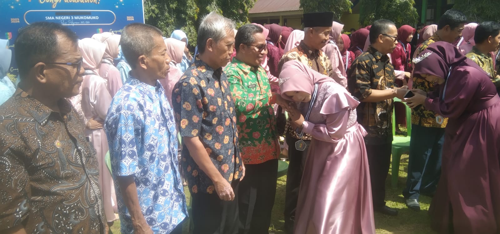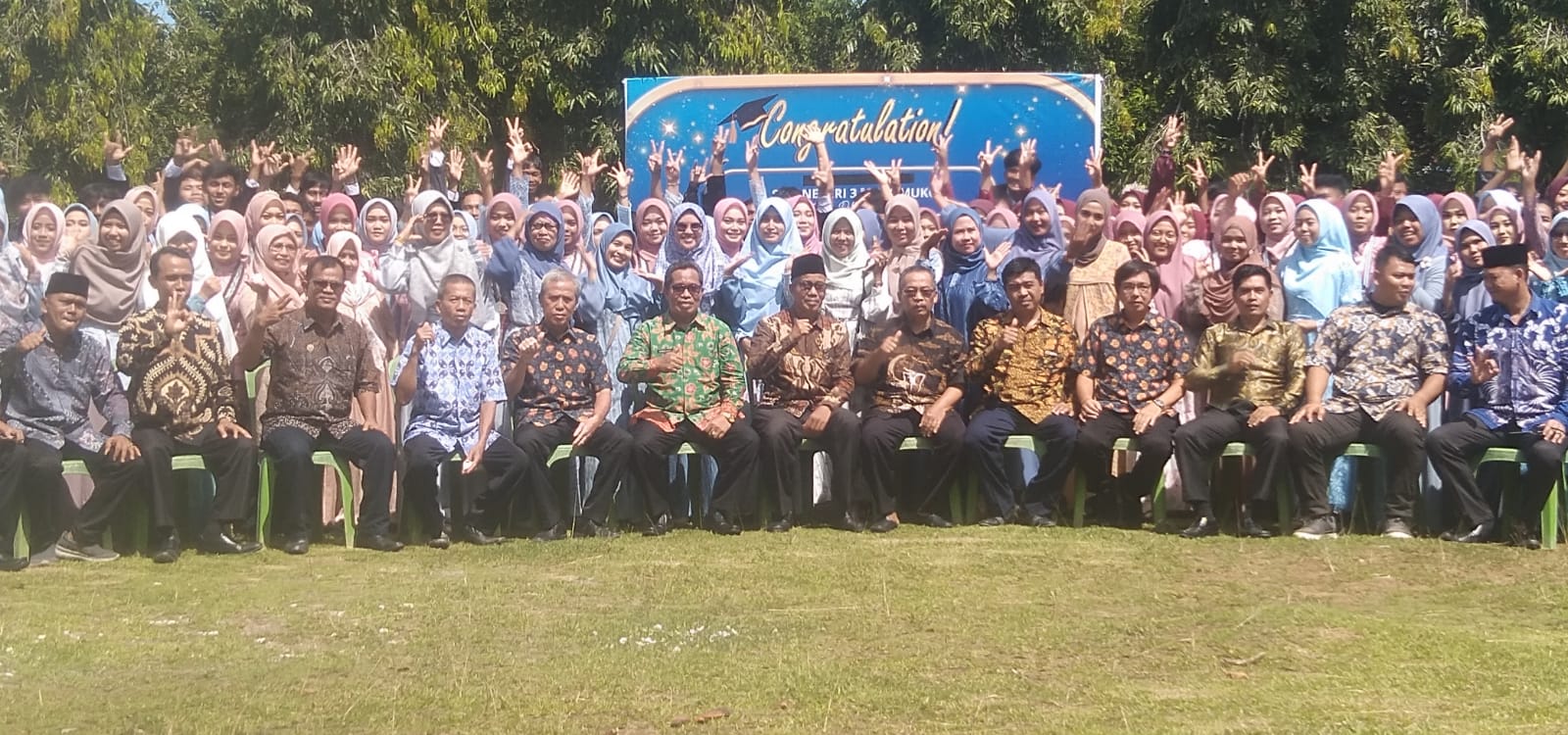 “Mohon maaf kepada wali murid dan keluarga besar SMAN 3 Mukomuko, mungkin selama bertugas 3 tahun ini terdapat kesilapan dan kekurangan kami, dan kami berharap kepada Sekolah sekiranya kelulusan anak anak kita yang akan tamat nanti dapat lulus 100 %, dan kepada anak anak kami yang baru tamat dapat meneruskan jenjang pendidikan ketingkat yang lebih tinggi agar nantinya anak anak kami ini dapat bermanfaat dan berguna ditengah masyarakat,” jelasnya.