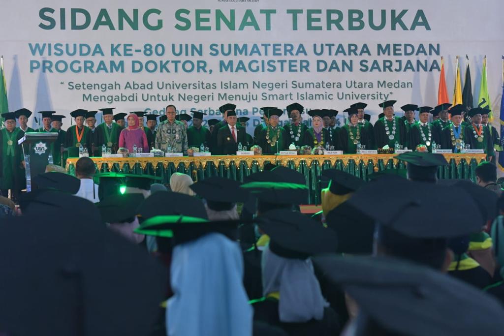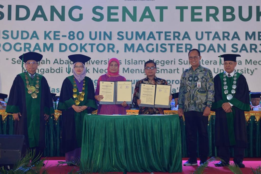 Penandatangan MoU disaksikan langsung oleh civitas akademika dan ribuan wisudawan di Gedung Serbaguna milik Pemprov Sumatera Utara.