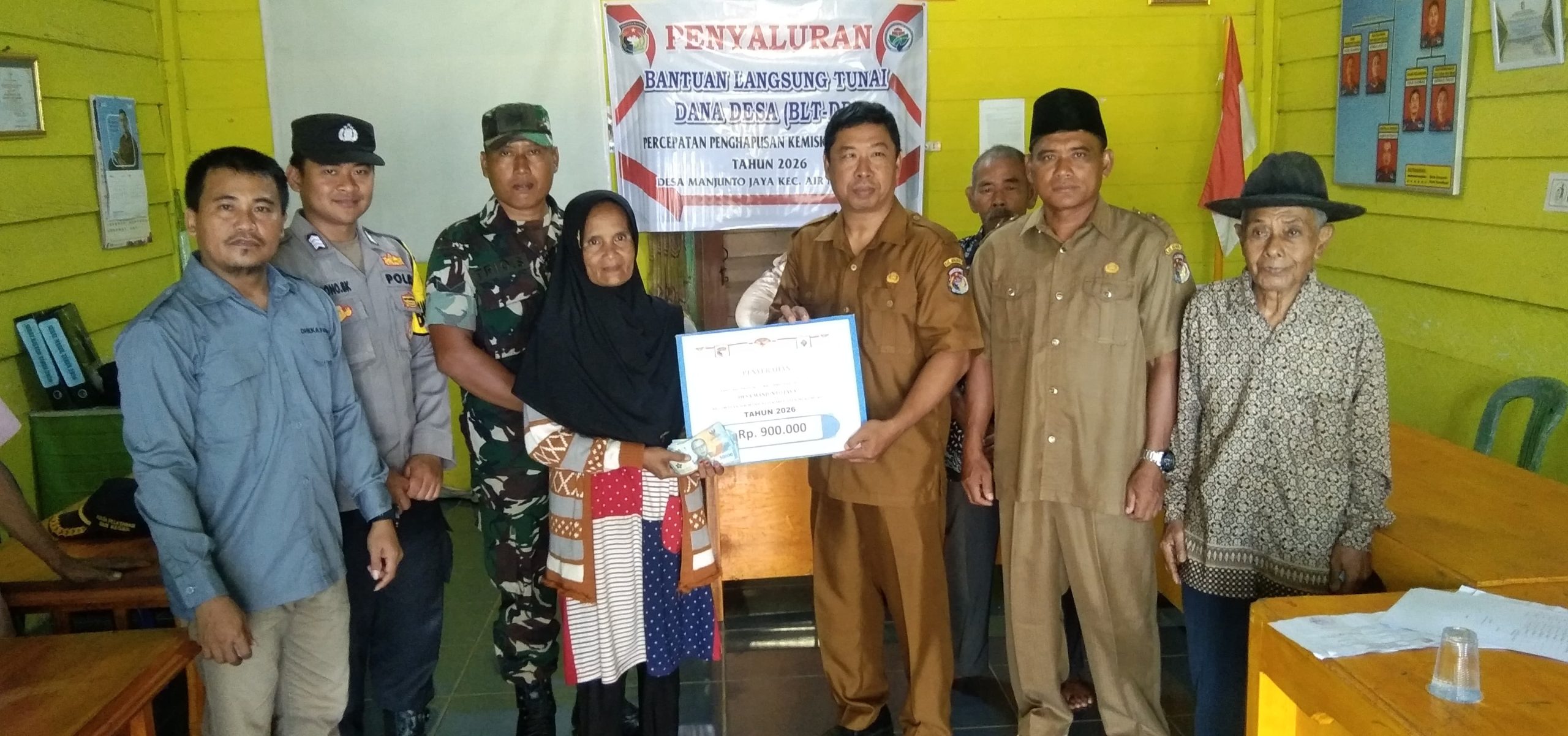 Ditempat yang sama, Pemerintah Kecamatan Air Manjunto melalui Kasi Ekobang Sutardi SM menyampaikan apresiasi kepada Pemdes Manjunto Jaya atas penyaluran BLT DD tahap I tahun 2026 kepada warganya.